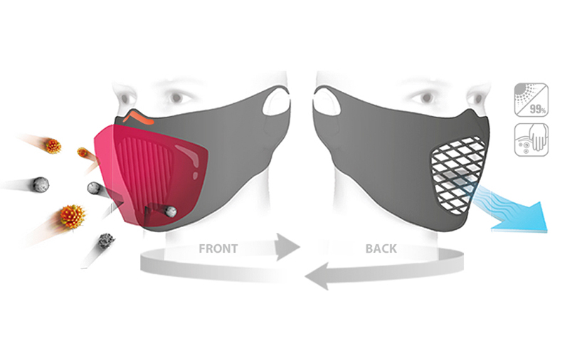 前後2面ダブルフィルター搭載の夏用スポーツマスク。