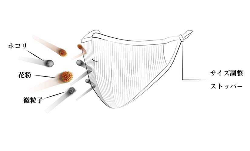 マスクが横にストレッチしても生地の目が荒くなりにくく花粉をしっかりとキャッチします。